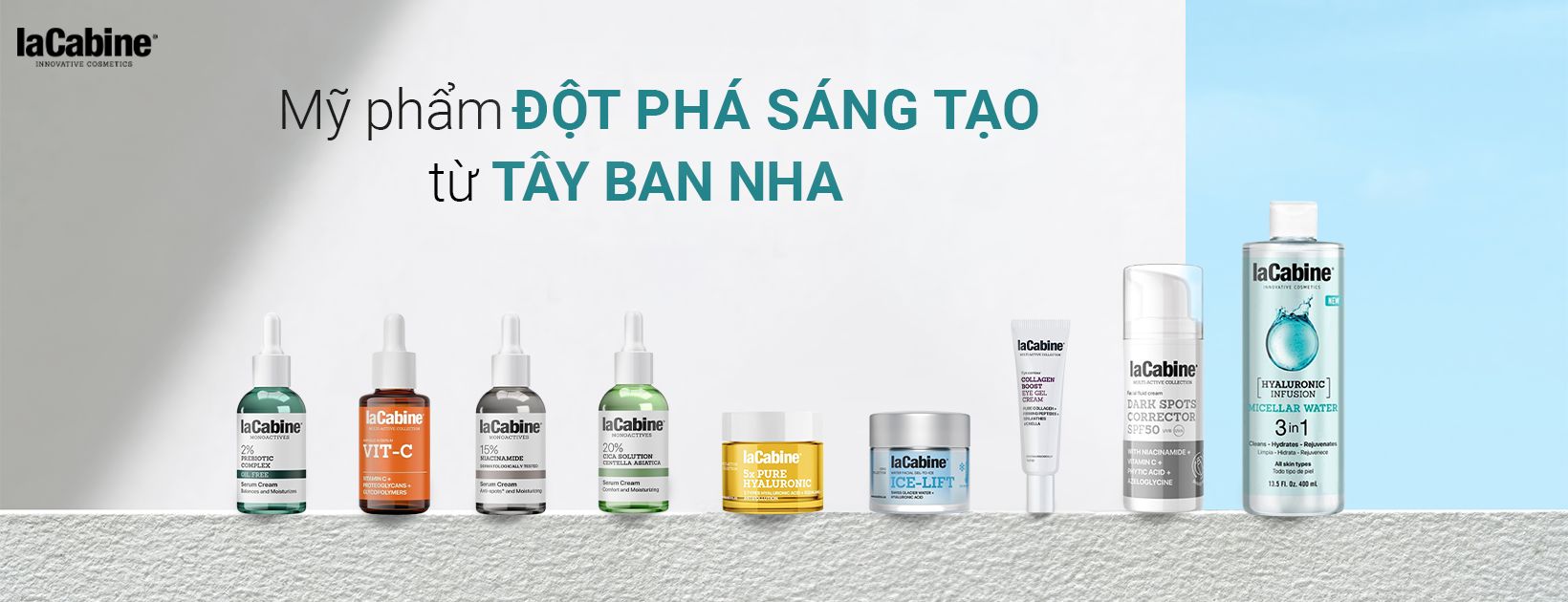 laCabine là thương hiệu dược mỹ phẩm đến từ Tây Ban Nha, nổi bật với các ống dưỡng da dạng ampoule cô đặc và serum in cream, được nghiên cứu và sản xuất tại châu Âu. Thương hiệu tập trung vào công thức hiệu quả cao, kết hợp hoạt chất nồng độ tối ưu và công nghệ dẫn truyền để mang lại kết quả nhìn thấy được trên nhiều vấn đề da: lão hóa, dưỡng ẩm, làm sáng, săn chắc. Sản phẩm của laCabine tuân thủ tiêu chuẩn chất lượng nghiêm ngặt EU, trải qua kiểm nghiệm da liễu và được thiết kế thân thiện, dễ dùng hàng ngày hoặc theo liệu trình. laCabine có danh mục đa dạng từ ampoule, serum đến kem dưỡng, giúp cá nhân hóa chu trình chăm sóc da tại nhà với mức giá hợp lý trong phân khúc trung–cao. Với định hướng “Mỹ phẩm đột phá sáng tạo”, laCabine hiện diện tại nhiều thị trường quốc tế và được người dùng ưa chuộng nhờ tính sáng tạo, hiệu quả, an toàn và trải nghiệm tối giản.